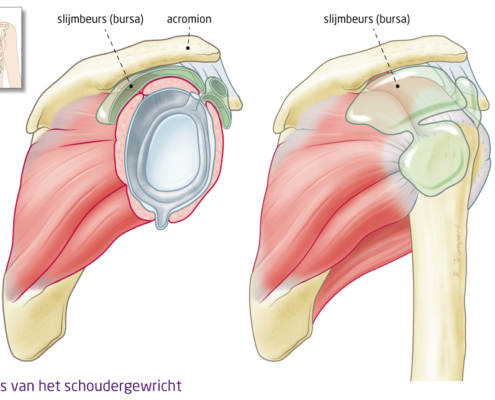 Het is een fraaie oplossing als het goed gaat. Als de pees verdikt en hierdoor de slijmbeurs tegen aangrenzende botten drukt, kan de slijmbeurs ook verdikt raken en een rol spelen bij uw pijnklachten.